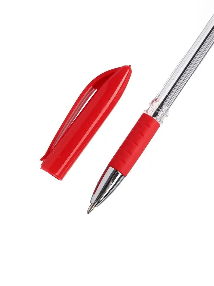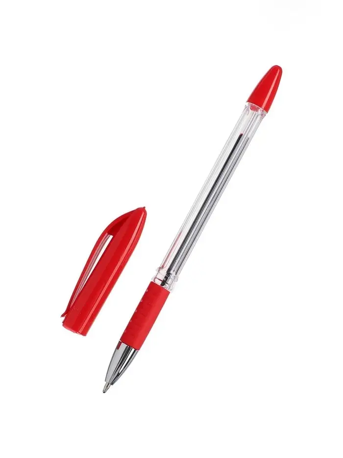 Ручка шариковая 0.5 мм, стержень красный, с резиновым держателем