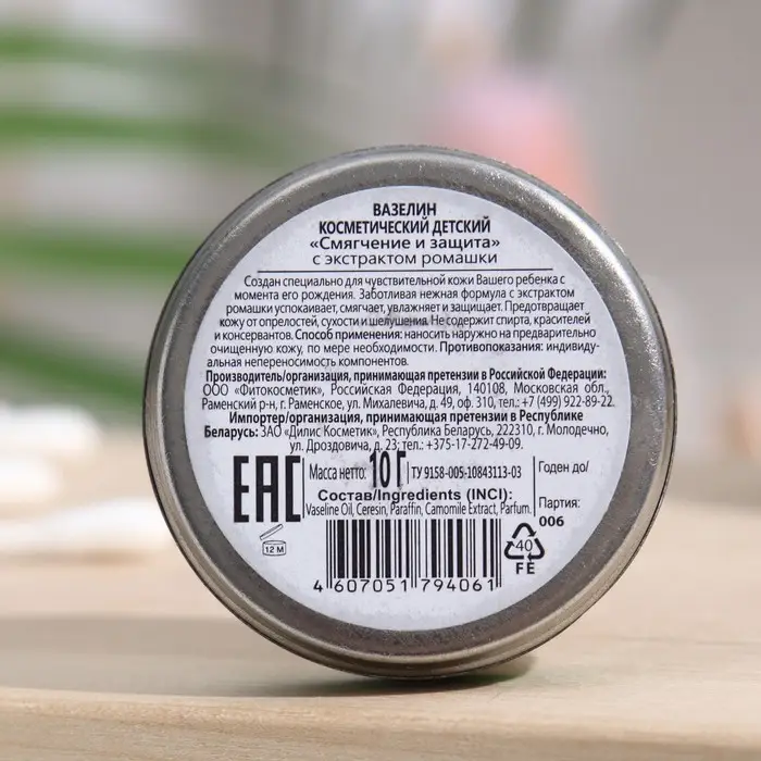 Вазелин косметический «Детский» с экстрактом ромашки, 10 г