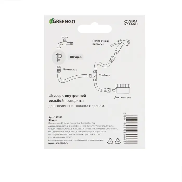 Адаптер с внутренней или внешней резьбой предназначен для плотного соединения шланга с краном подачи воды. Благодаря особой резьбе вы надежно защищены от протечек. Теперь ваш кран стал универсален и готов к подключению большинства поливочных систем.