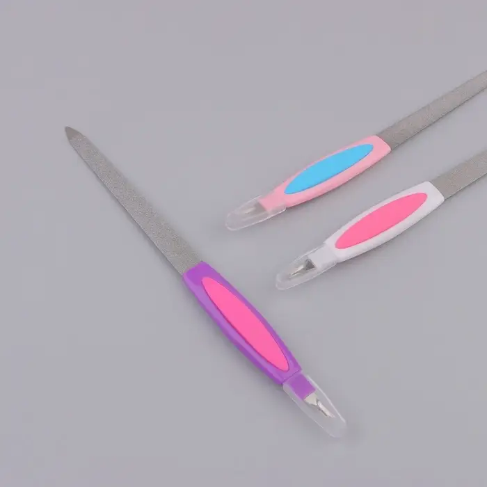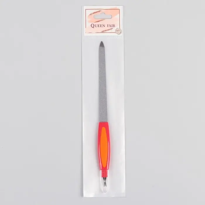 Пилка-триммер металлическая для ногтей, прорезиненная ручка, с защитным колпачком, 19 см, МИКС
