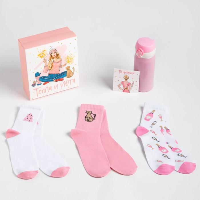Новогодний подарочный набор термос и носки KAFTAN "Тепла и уюта", р-р36-39