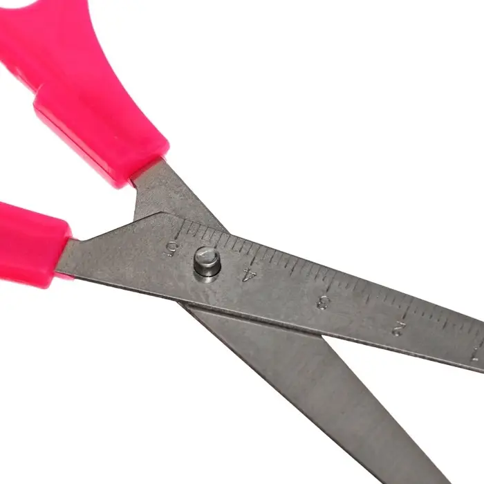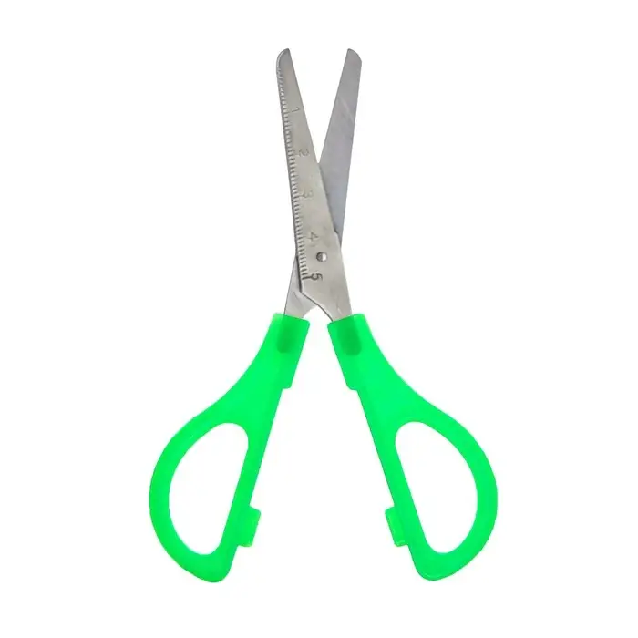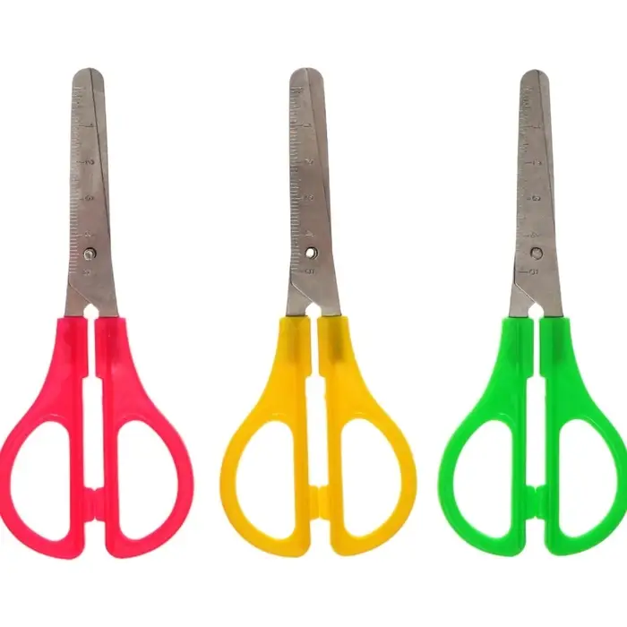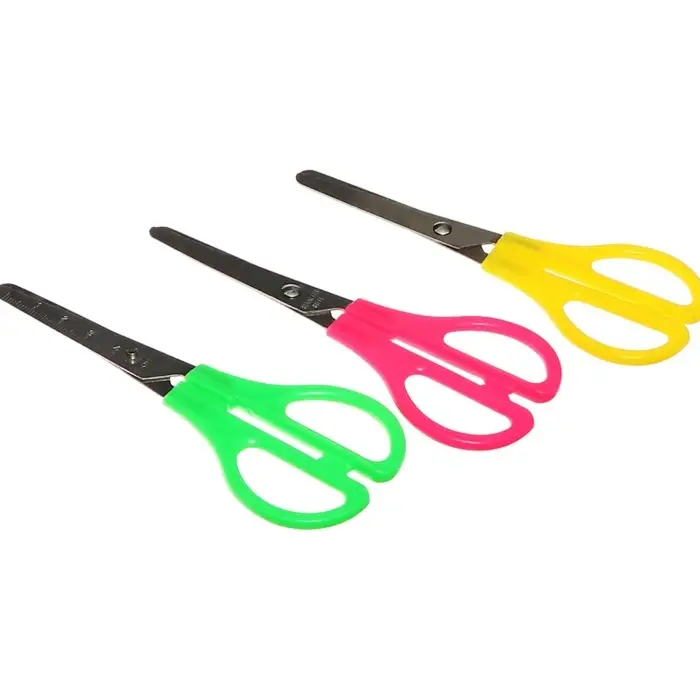 Ножницы канцелярские 13 см, пластиковые ручки, закруглённые концы с линейкой, корпус МИКС