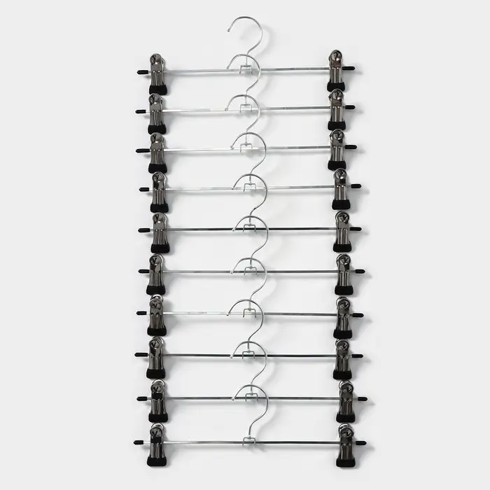 Вешалка для брюк и юбок с зажимами, 30×10 см, серебряная
