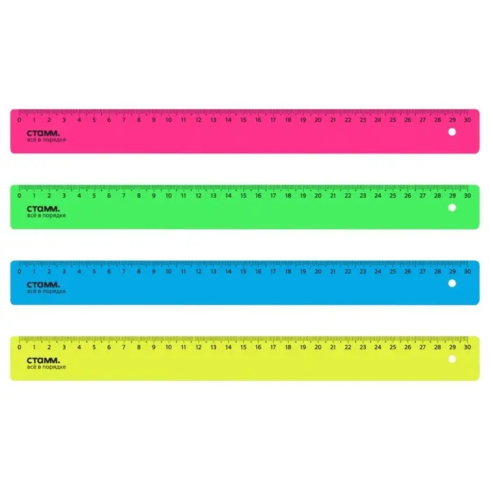 Линейка 30 см Стамм Neon, пластиковая, непрозрачная, неоновые цвета, европодвес, микс (цена за 1 шт.)