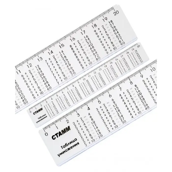 Линейка 20 см Стамм "Таблица умножения", со справочным материалом, пластиковая, прозрачная, бесцветная