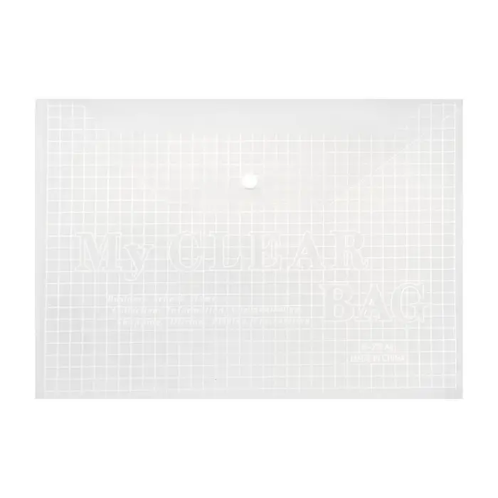Папка-конверт на кнопке, А4, 140 мкм, Calligrata "Клетка", прозрачная