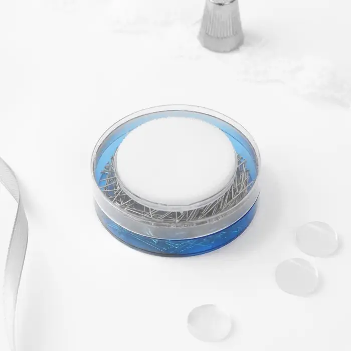 Набор представляет собой круглый футляр с поролоновой подушечкой на крышке. Воткните булавки в игольницу, чтобы быстро убрать или, наоборот, достать иголку. Создавайте новые предметы одежды, моделируйте и проявляйте талант с удобными принадлежностями.