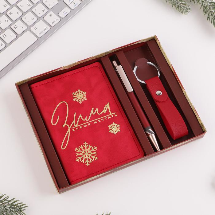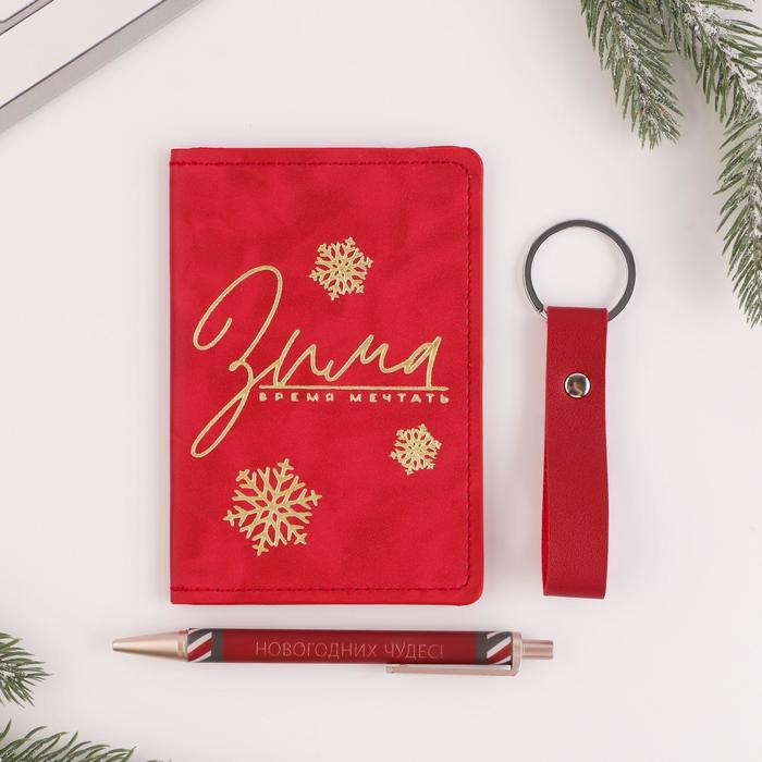 Подарочный новогодний набор «Новогоднее чудо»: обложка для паспорта, брелок и ручка пластик