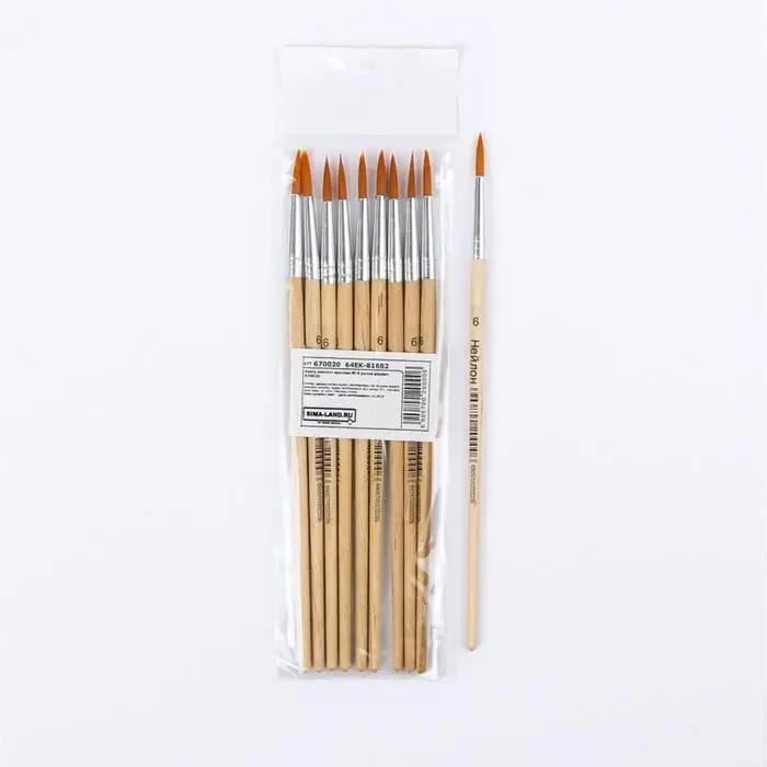 Набор кистей, щетина, плоские, 6 штук: № 1, 2, 3, 4, 5, 6, с деревянными ручками, на блистере