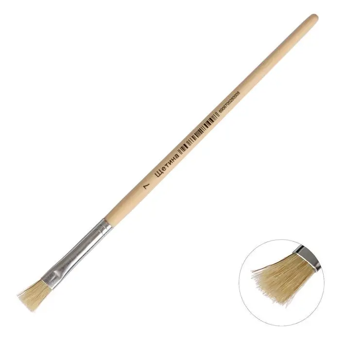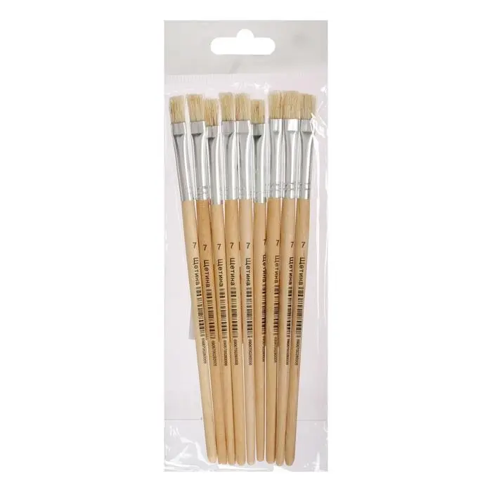Набор кистей, щетина, плоские, 6 штук: № 1, 2, 3, 4, 5, 6, с деревянными ручками, на блистере