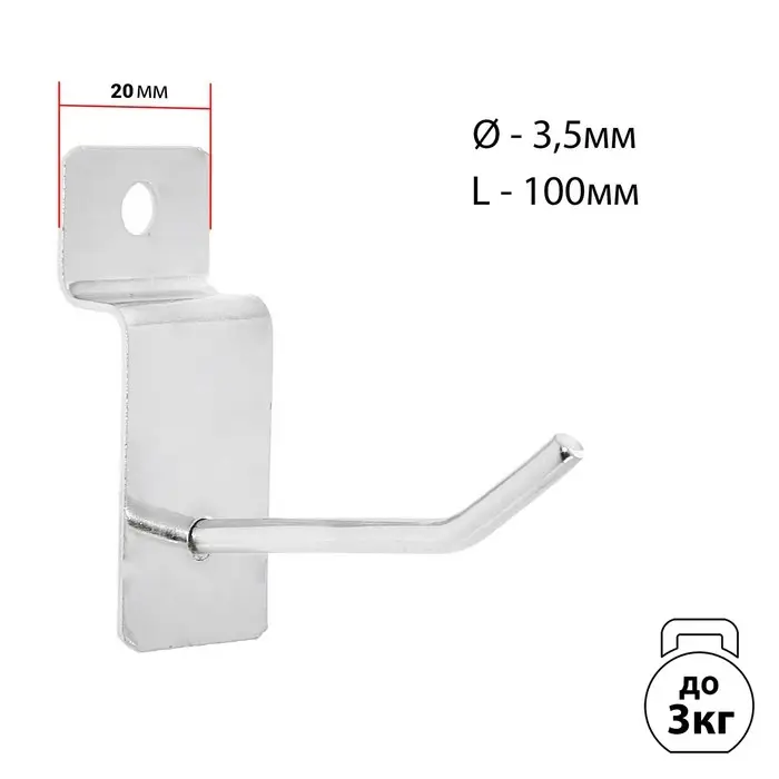 Крючок для экономпанелей, с диаметром 3,5 мм и длиной 10 см, идеально подходит для размещения небольших товаров на стенах торговых объектов. Это удобное решение для организации пространства в магазинах, выставочных залах и других коммерческих помещениях.
