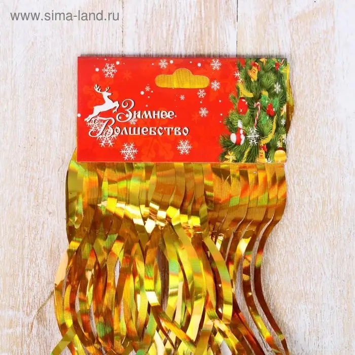 Дождик новогодний золотистый, b-7,5 см, L-150 см