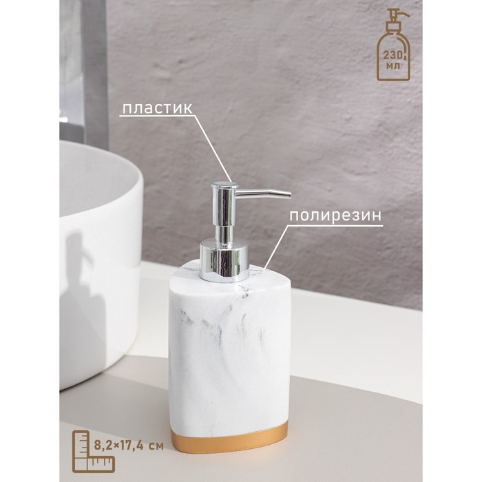Набор аксессуаров для ванной комнаты «Мрамор», 3 предмета (мыльница, дозатор 230 мл, стакан)