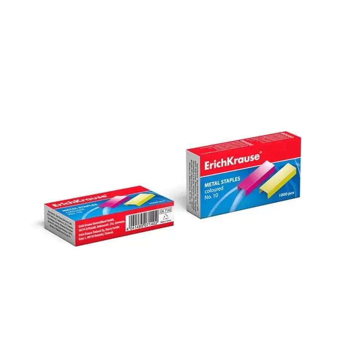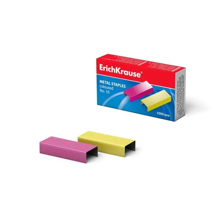 Скобы омеднённые №10, ErichKrause, для степлера, 1000 шт., цветные