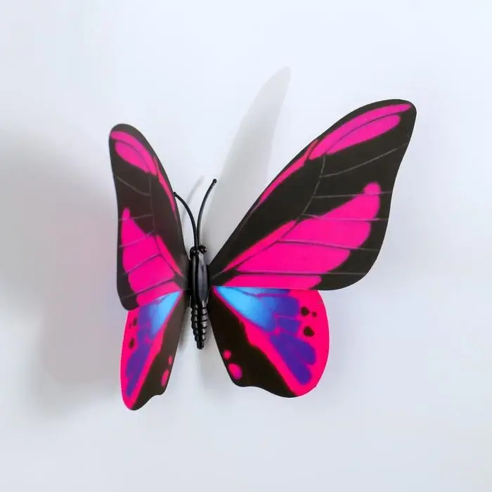 Магнит пластик "Бабочки светящиеся с вырезными узорами" набор 12 шт 8; 10; 12 см