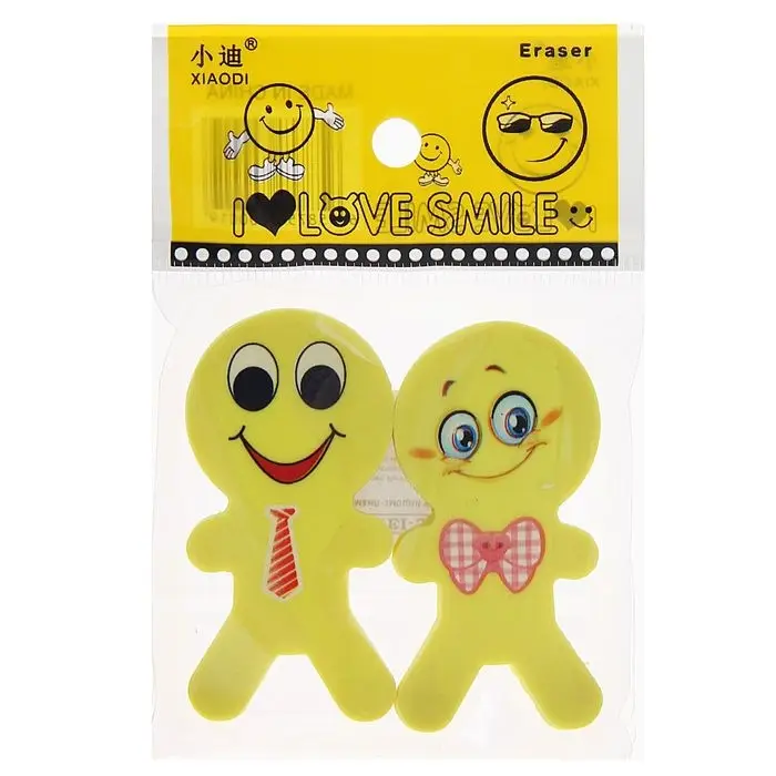 Набор фигурных ластиков "Смайл", 2 штуки, в блистере, МИКС
