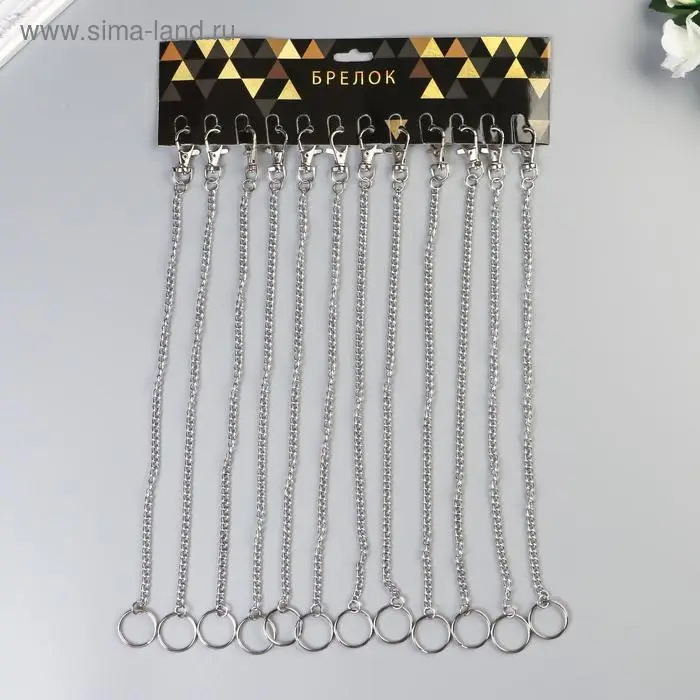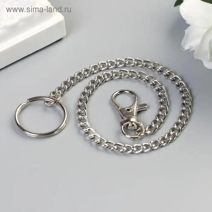 Цепочка д/ключей с карабином 3,5х1,3 см на кольце d=3 см Витая серебро 30 см