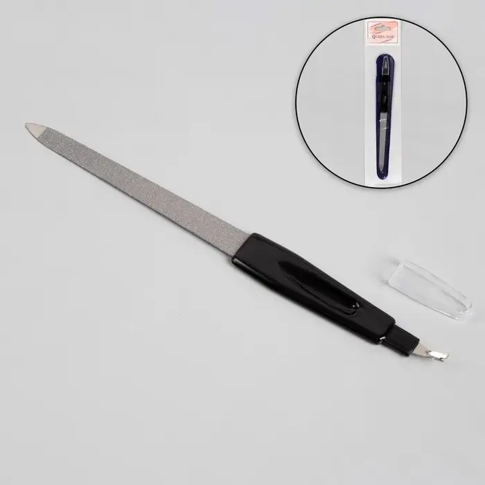 Пилка-триммер металлическая для ногтей, прорезиненная ручка, с защитным колпачком, 19 см, МИКС