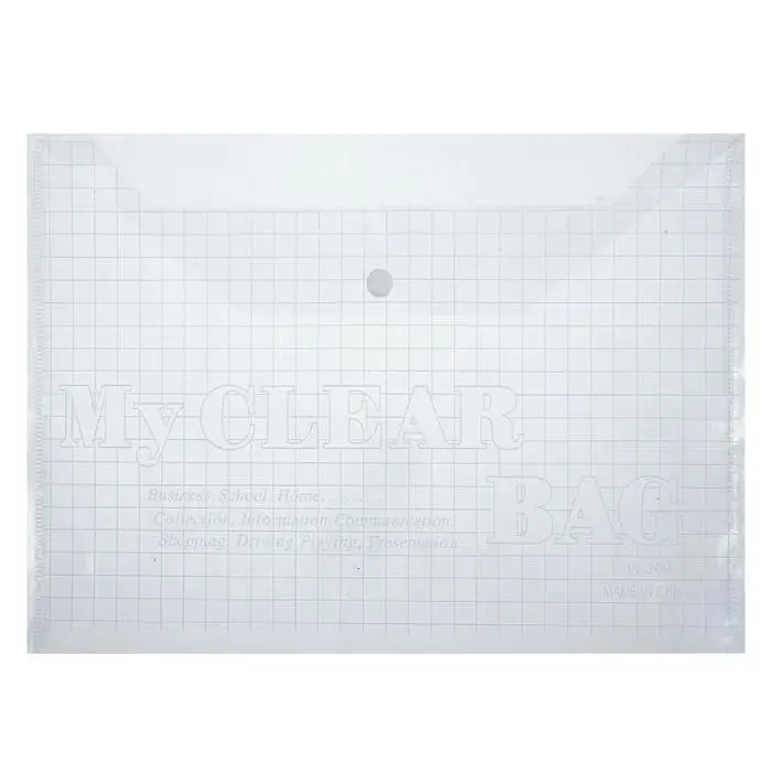 Папка-конверт на кнопке, А4, 120 мкм, Calligrata "Клетка", прозрачный, бесцветный