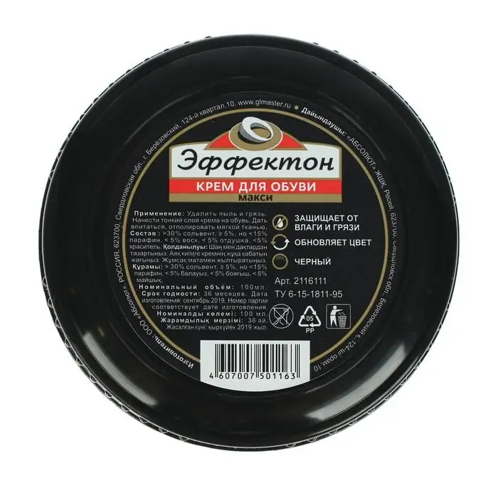 Средство от торговой марки «Эффектон» придаст вашей обуви блеск, эластичность и освежит цвет кожи. Крем обеспечивает защиту от вредного воздействия влаги и соли, предохраняет от трещин и старения, защищает от загрязнения.