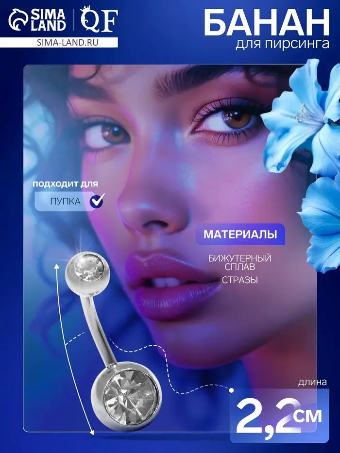 Пирсинг в пупок «Банан», L=2.2 см, белый в серебре, фасовка 20 шт.