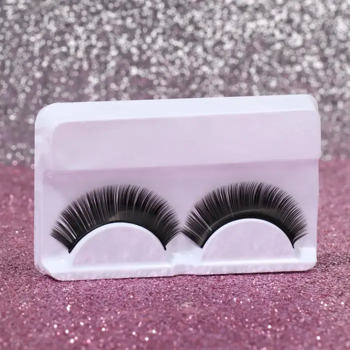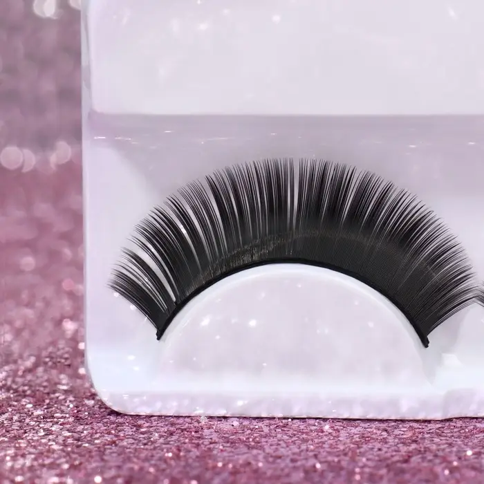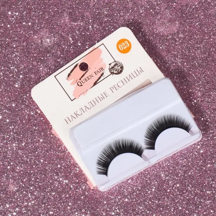 Ресницы накладные блестящие розовые пластик к/короб QF
