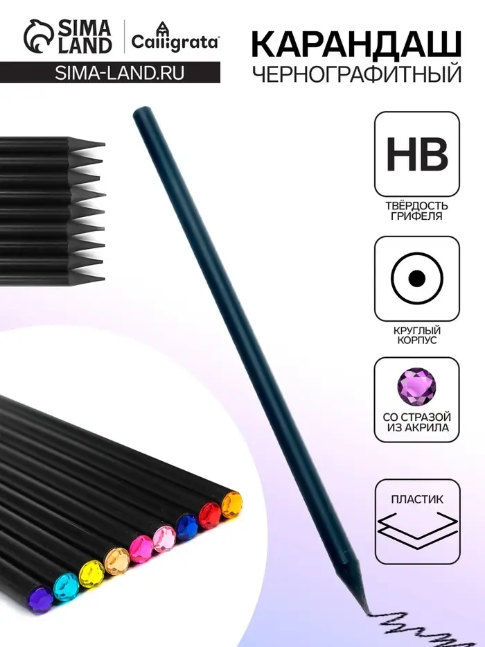 Карандаш чернографитный твёрдость НВ, корпус чёрный, заточенный, со стразой из акрила, МИКС — прекрасное сочетание выгодной цены и высочайшего качества. Прочный графитовый стержень не ломается и не крошится, а деревянный корпус легко затачивается.