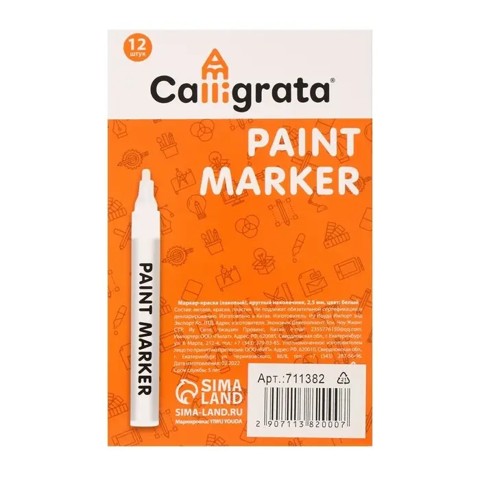 Маркер-краска (лаковый) 2.0 MunHwa Slim Size, белая нитро-основа