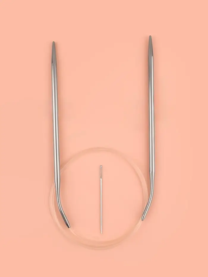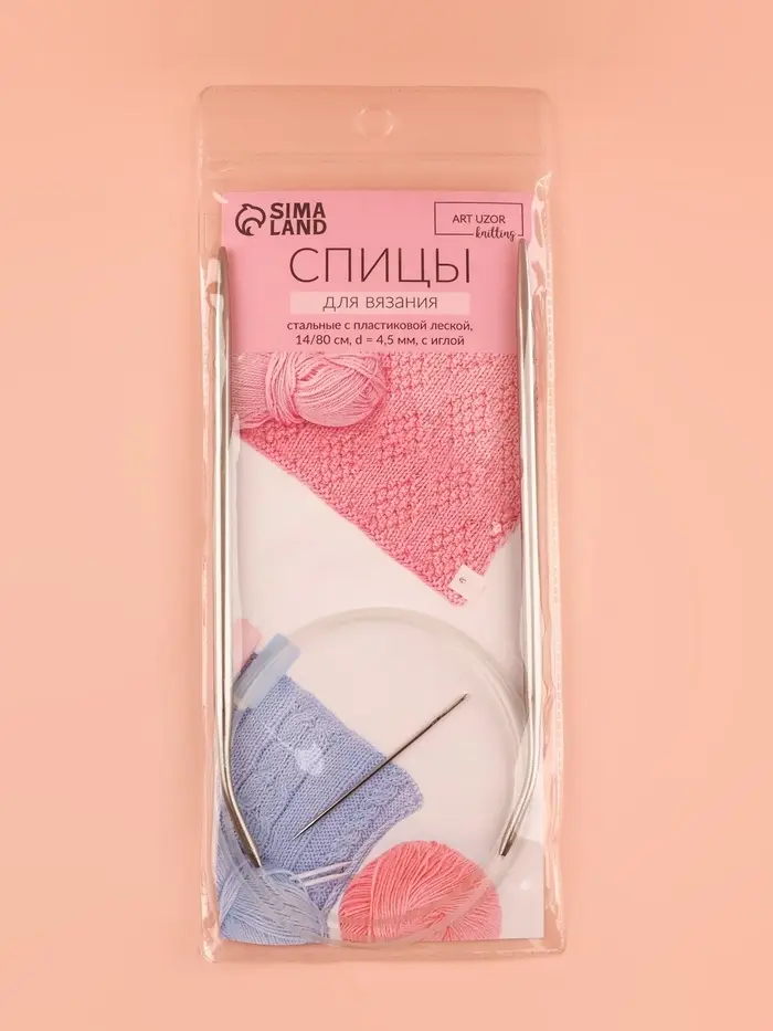 Спицы круговые, для вязания, с пластиковой леской, d=4.5 мм, 14/80 см, с иглой