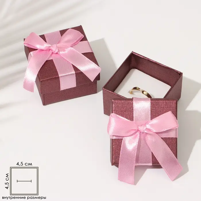 Коробочка подарочная под кольцо/серьги «Благородность», 5×5, (размер полезной части 4.5×4.5 см), бордовая, вставка белая