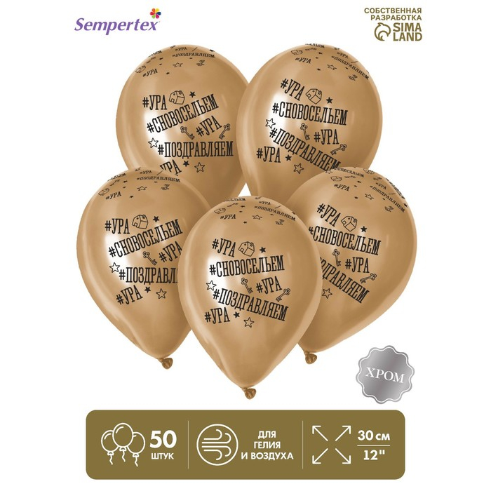 Воздушный шар латексный 12" «С Новосельем», золото хром, 50 шт.