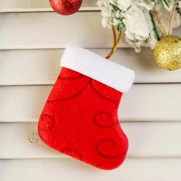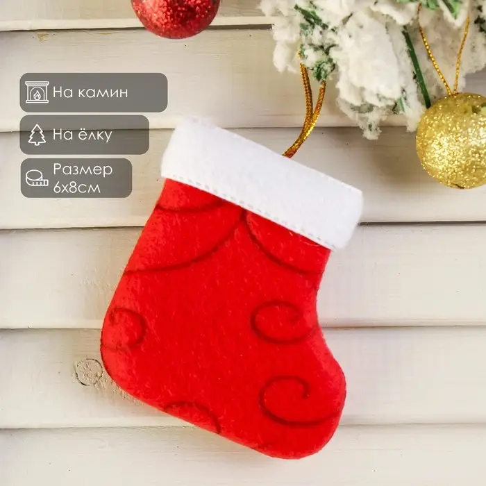 Подвеска на ёлку «Носок с узорами», мягкая, 6×8 см, красный