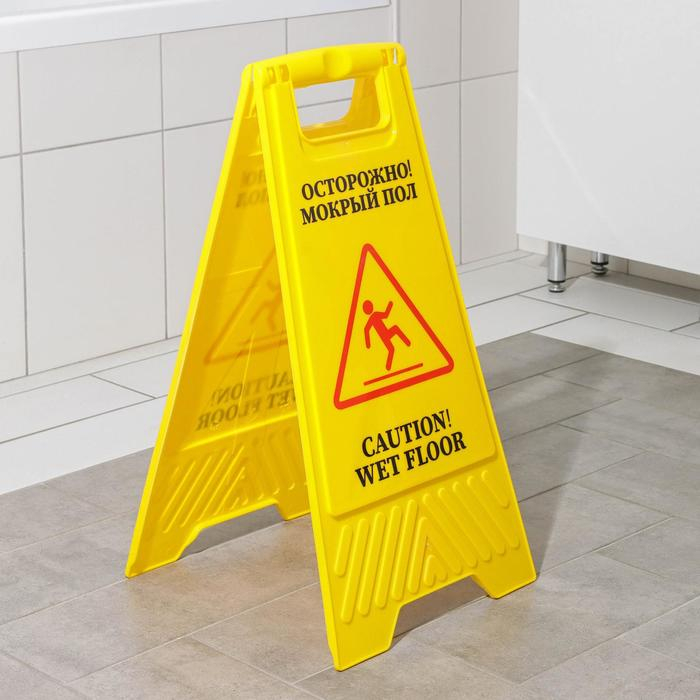 Знак «Мокрый пол», 61×30, пластик, цвет жёлтый