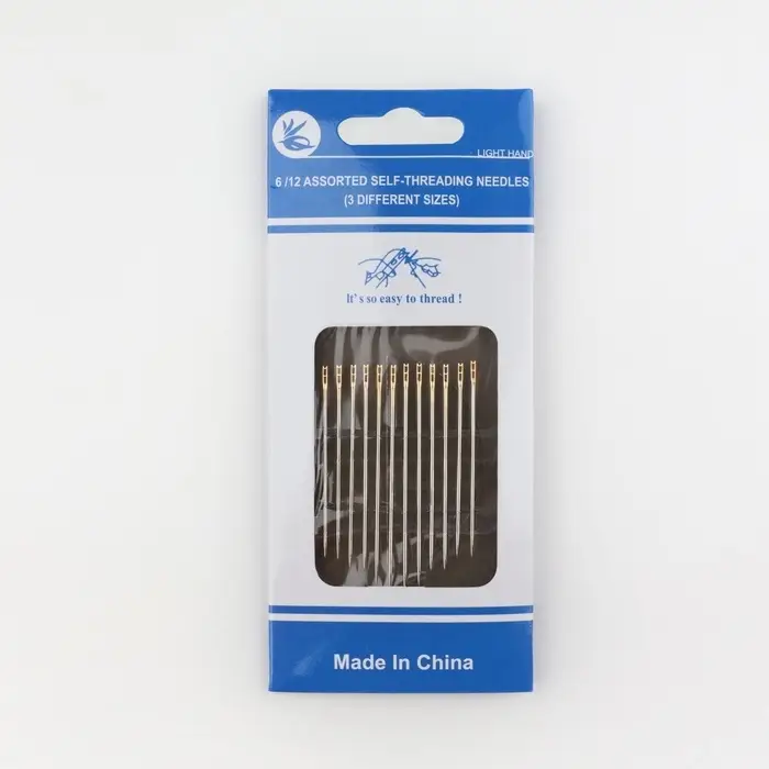 Иглы швейные, d=0.78 мм, 3.5 - 4.2 см, с золотым ушком, самовдеваемые, 12 шт.