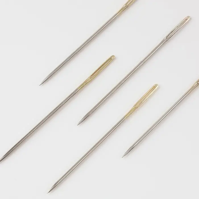 Позолоченное ушко значительно упрощает вдевание: оно идеально гладкое и не цепляет материал. В процессе шитья уменьшается нагрузка на нить, она меньше истирается. Остриё легко прокалывает полотно и позволяет проложить ровные стежки.