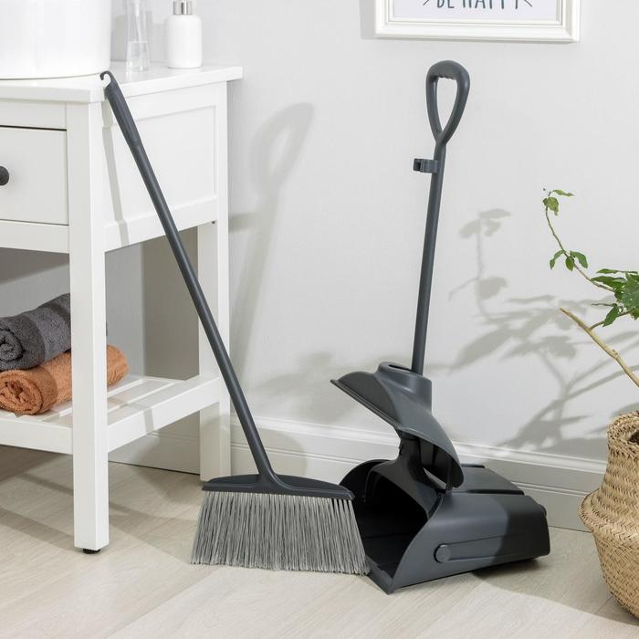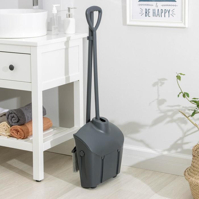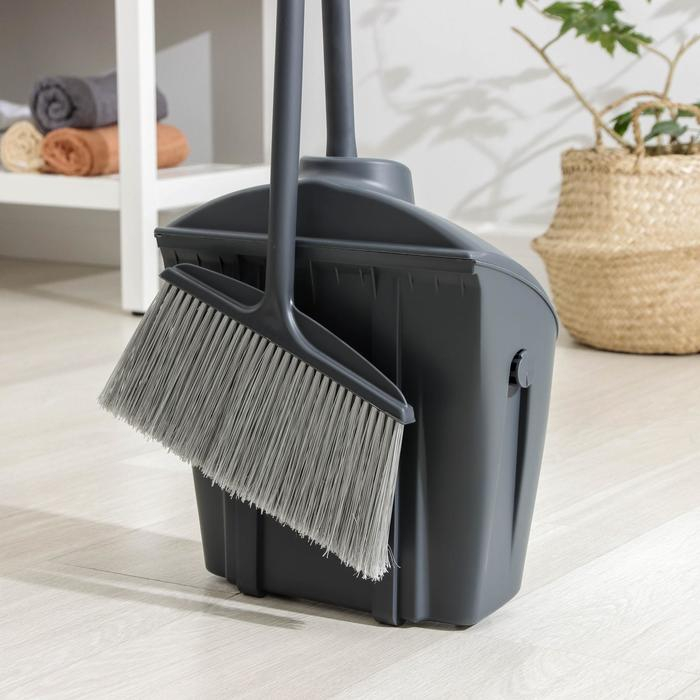 Щётка для пола, с совком-ловушкой, с крышкой, цвет серый