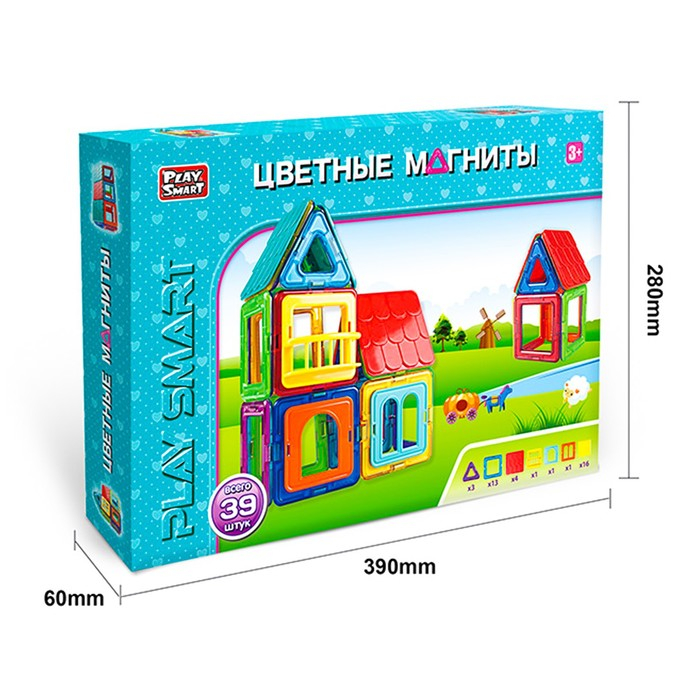 Конструктор магнитный «Цветные магниты», 55 деталей