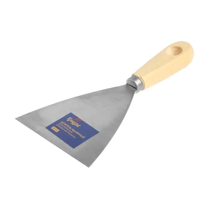 Шпатель малярный ТУНДРА, металлический, деревянная рукоятка, 100 мм