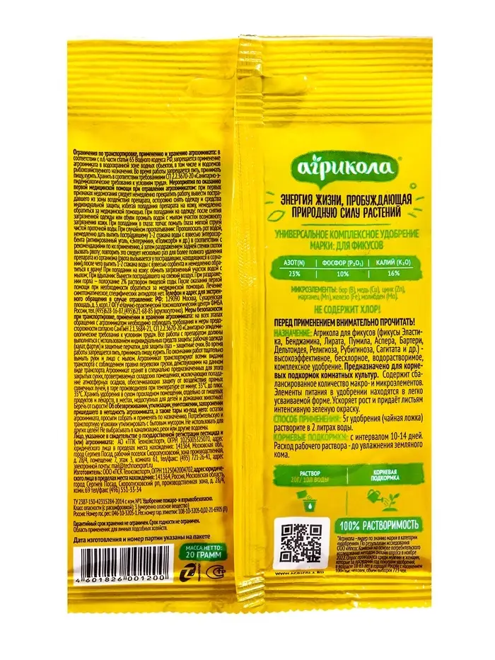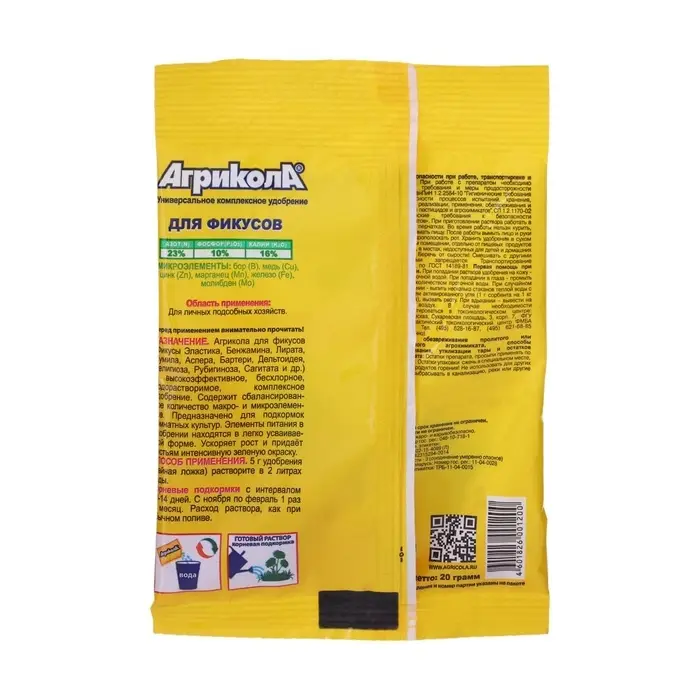 Удобрение Агрикола с магнием для различных видов фикусов Агрикола обеспечит любимый фикус всем необходимым для роста, придаст насыщенную окраску листьям.