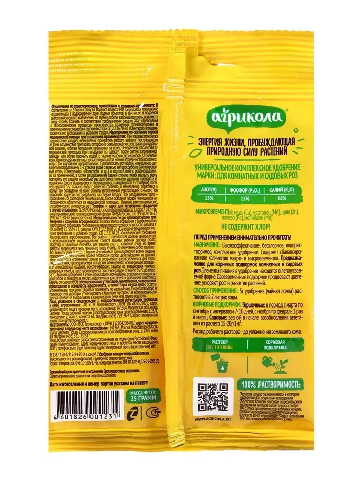 Удобрение для комнатных и садовых роз, Агрикола — высокоэффективное, бесхлорное, водорастворимое комплексное удобрение.