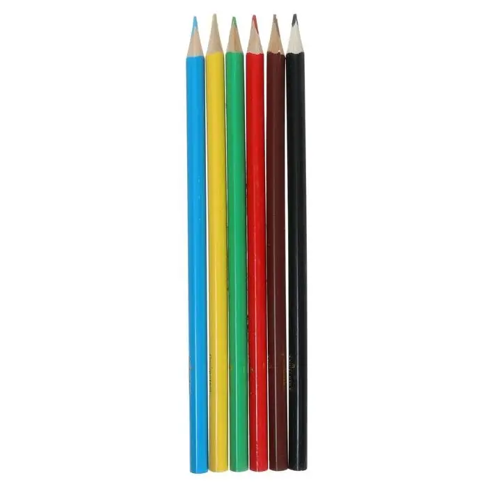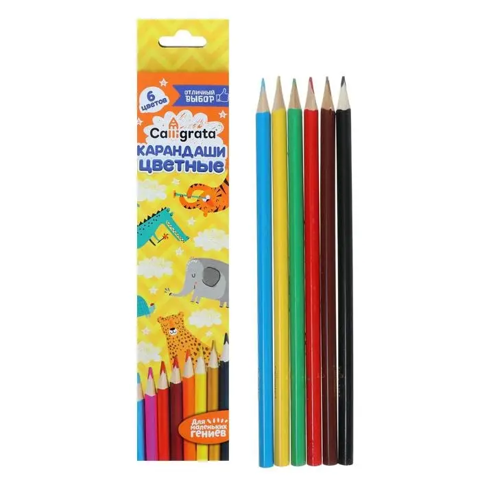 Карандаши цветные 6 цветов, корпус деревянный, треугольный, в картонной коробке