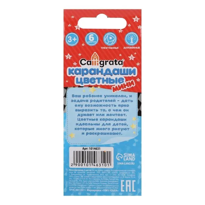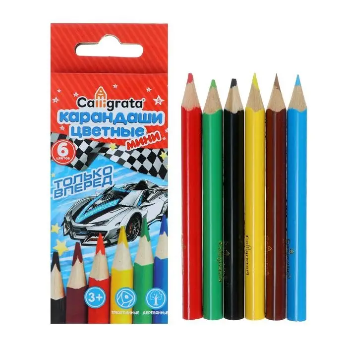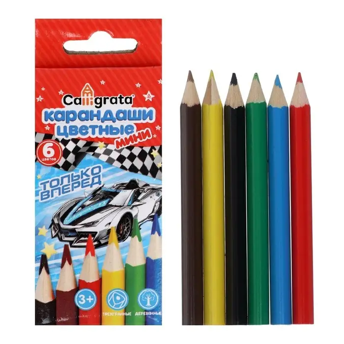 Карандаши цветные 6 цветов МИНИ Calligrata «Машинка»