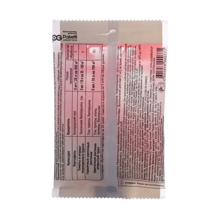 Как применять: Опрыскивать растения при появлении вредителей.