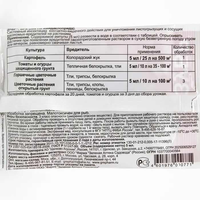 Чем средство от насекомых-вредителей Зубр 5 мл лучше других средств: