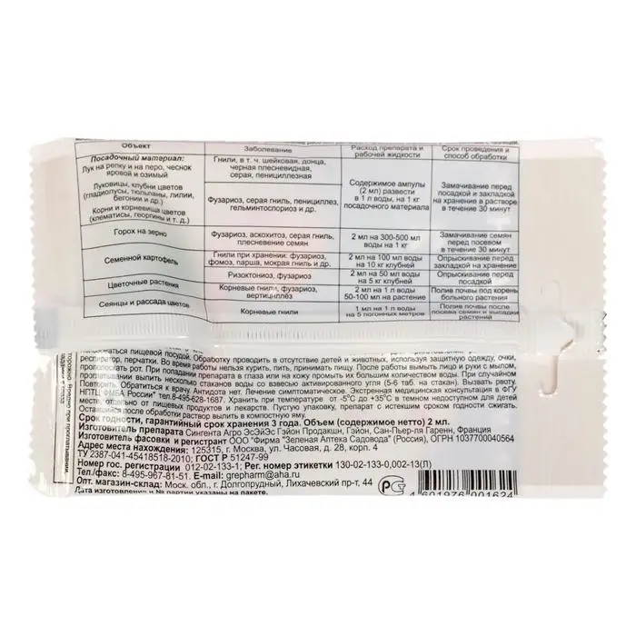 - создает защитный барьер на поверхности посадочного материала и в прикорневой зоне в почве;