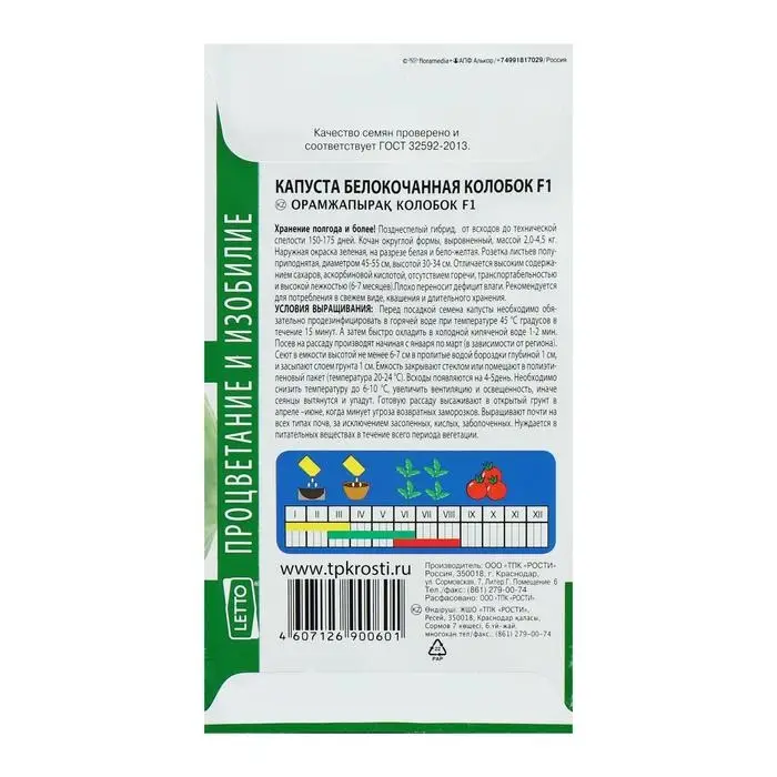Семена Капуста белокочанная "Колобок" F1 поздняя, 0,25 - 0,3 г