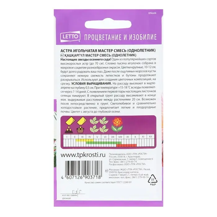 Семена цветов Астра Мастер смесь игольчатая, О, 0,3г