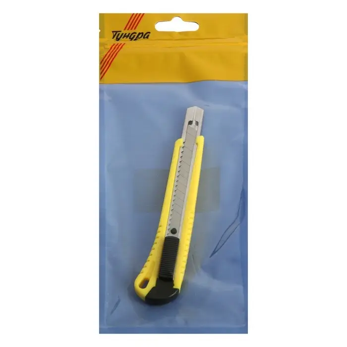 Нож универсальный ТУНДРА, пластиковый корпус, металлическая направляющая, 9 мм