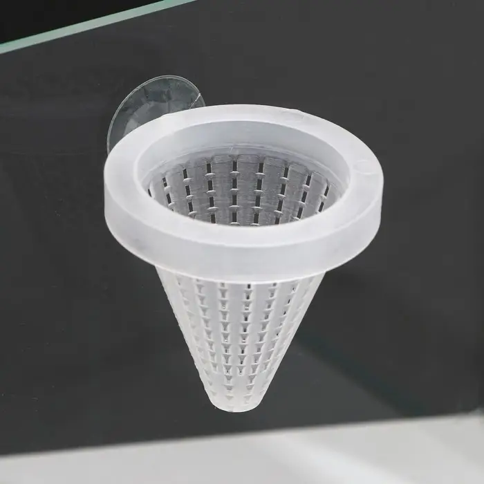 Кормушка для рыб, квадратная с дном, пластик- подстраивается вручную к уровню воды- для контроля кормления- уменьшает вероятность засорения фильтра- с присоской.