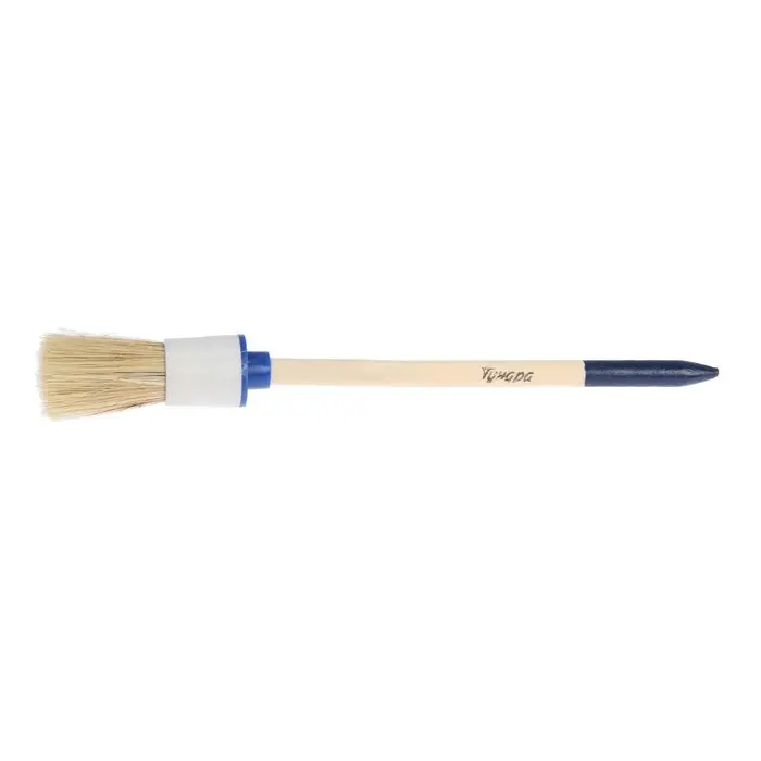 Круглая форма кисти подойдёт для окрашивания в труднодоступных местах, как углы, дверные проёмы и окна.